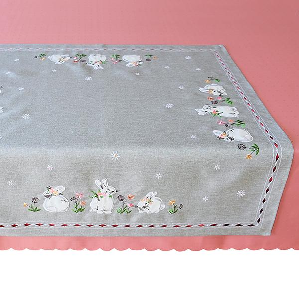 Tischdecke Ostern 85x85 Cm Hasen Hellgrau Ostertischdecke Osterdeko Stickerei Rosa